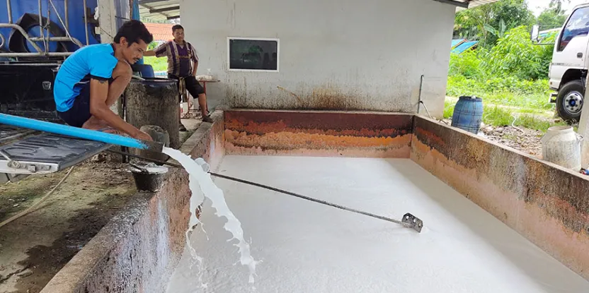 Production of latex from rubber tree (Hevea brasiliensis) in Thailand. Latex is an important non-timber forest product. Photo by Michael Brady/CIFOR-ICRAF